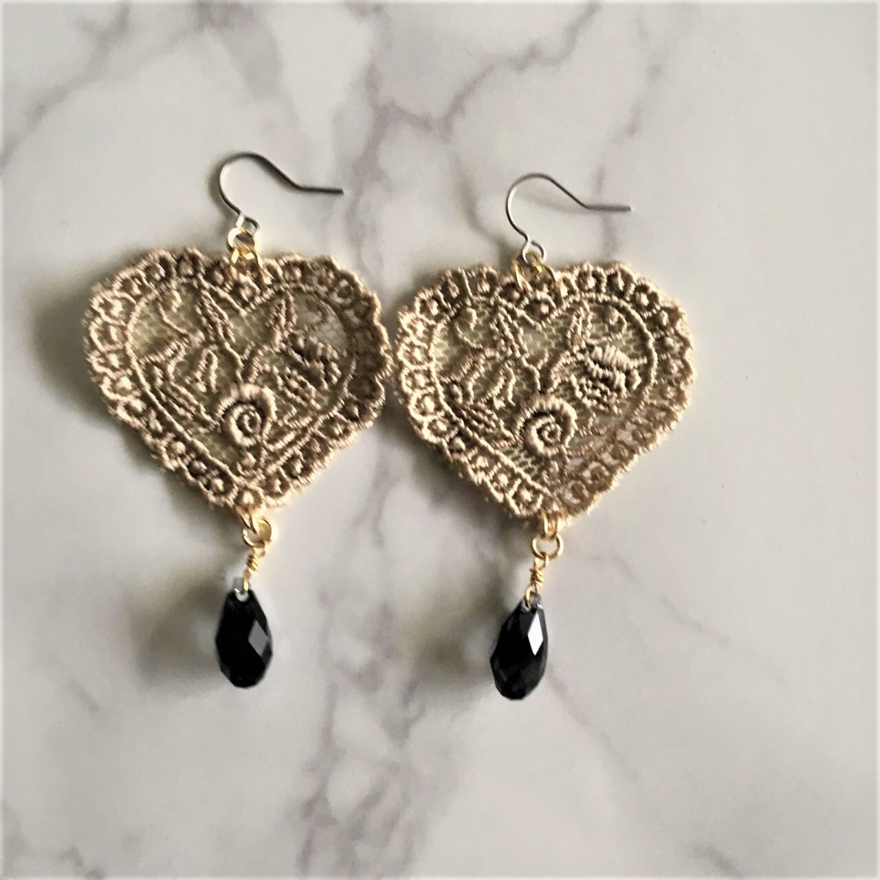 [素材] スワロフスキービーズ、真鍮、チタンポスト、チュールレース(レーヨン)